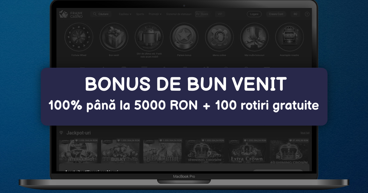 Frank Casino vă întâmpină cu o experiență de joc premium adaptată special pentru jucătorii din România. Beneficiați de un bonus de bun venit generos de 100% până la 2.000 lei la prima depunere, cu cerințe de rulaj de doar 35x. Platforma noastră funcționează sub licența Curacao și oferă avantaje excepționale precum plăți rapide în maximum 24 de ore și suport clienți disponibil non-stop. Gama noastră vastă include sute de jocuri slot cu plăți rapide, mese de cazino live cu dealeri reali și jocuri de masă clasice, toate furnizate de dezvoltatori de top precum NetEnt, Pragmatic Play și Evolution Gaming. Versiunea mobilă optimizată vă permite să vă bucurați de jocuri oriunde vă aflați, iar metodele diverse de depunere și retragere includ carduri bancare, portofelele electronice și transferurile bancare, toate procesate rapid și în siguranță pentru o experiență de joc fără întreruperi în România.